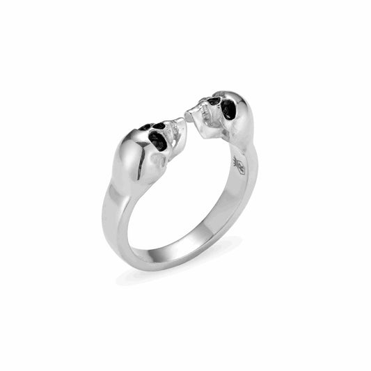 Roohan 925 Sterling Silver Double skull Ring